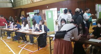 学校保健委員会は、鳩ヶ谷中学校区の小中学校(鳩小、桜町小、鳩中)が集まって、2014年から毎年行っている委員会です。コロナ禍で昨年までは規模を縮小していましたが、今年度は久しぶりに、保健委員の児童・生徒の皆さんや保護者、学校医や薬剤師、栄養士の方々にも参加していただき、鳩ヶ谷小学校体育館で盛大に行われました。