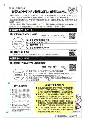 厚生労働省から、5歳~11歳の児童、保護者向けに「新型コロナワクチン接種についてのお知らせ」が出されています。(情報提供まで)