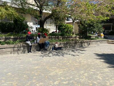 最初の授業では、画板を持って校庭に飛び出し、各々の春を感じました。
