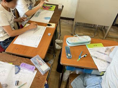コンパスと分度器を使って、もとの図形のどこを使えば合同な図形が作図できるか、